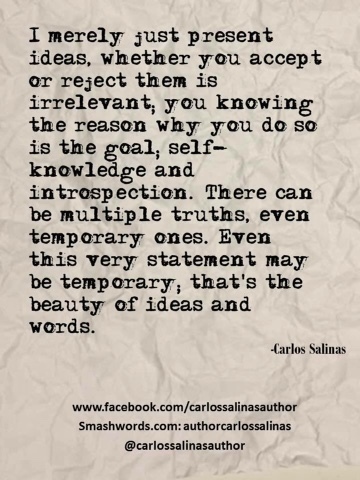 Share if you like my work just please credit me in any reposts, thanks for reading! (Get my books on Amazon.com or my eBooks on Smashwords.com) :) Find more at www.goodreads.com/carlossalinas