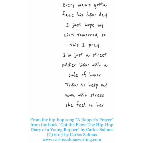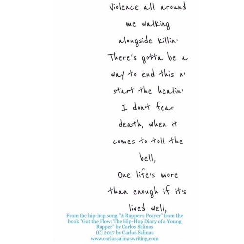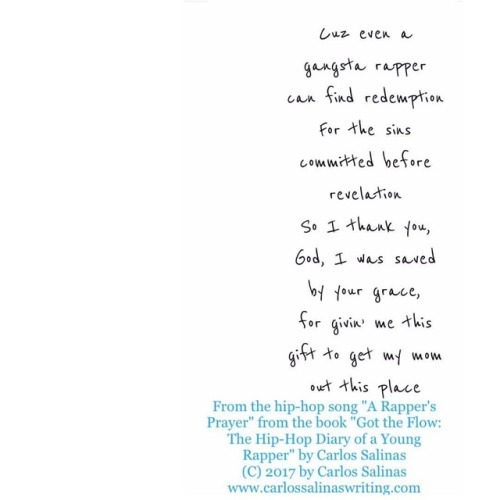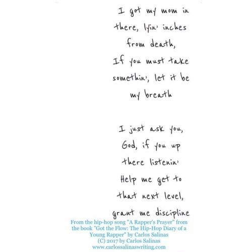 From the hip-hop/rap song “A Rapper’s Prayer” by Troy Jones, the main character of the book (“Got the Flow: The Hip-Hop Diary of a Young Rapper”) This book is a mix between the movies 8 Mile, The Outsiders, Dope, and Rocky. 16-year-old Troy Jones is in the hospital as his mom just survived a heart attack from overworking and stress. He is determined to become a successful rapper to give his mom a better life. Inspired by the pain of the his mom’s hospitalization and the fear of his upcoming 3rd rap battle (he lost his first two) he pens this rap to God. The book is due out Fall 2017. THIS SONG IS FREE FOR DOWNLOAD AND FEEL FREE TO SHARE THE MP3. :) Free excerpt and updates at carlossalinaswriting.com! https://youtu.be/T_SXM3cvzGs