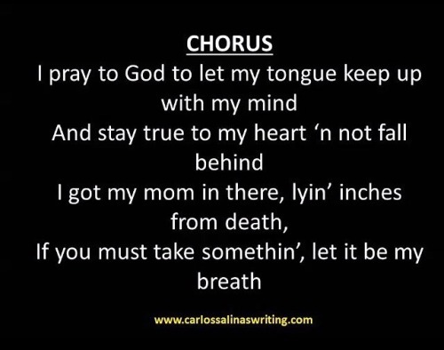 The main character of the book (“Got the Flow: The Hip-Hop Diary of a Young Rapper”) 16-year-old Troy Jones is in the hospital as his mom just survived a heart attack from overworking and stress. He is determined to become a successful rapper to give his mom a better life. Inspired by the pain of the his mom’s hospitalization and the fear of his upcoming 3rd rap battle (he lost his first two) he pens this rap to God. The book is due out Fall 2017. THIS SONG IS FREE FOR DOWNLOAD on SoundCloud AND FEEL FREE TO SHARE THE MP3. :) watch the videohttps://youtu.be/T_SXM3cvzGs Free excerpt and updates at carlossalinaswriting.com! Thanks for listening!