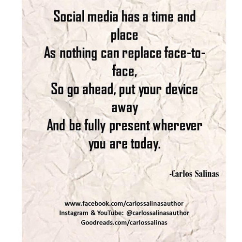 #socialmedia #disconnect #bepresent #awareness From the #book #thelittlebookofbigquotes Picture quotes, free book excerpts, videos, and more at www.carlossalinaswriting.com (link in bio) Creative, inspirational writing for the mind, spirit, and heart. Share if you like my work just please credit me in any reposts, thanks for reading! (My books and eBooks available on Amazon.com)
