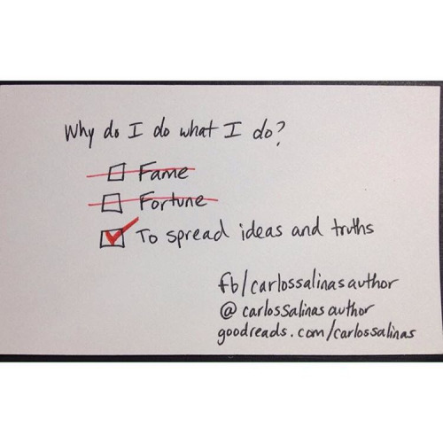 From the #thelittlebookofbigquotes –Newly launched website carlossalinaswriting.com Creative writing for the mind, spirit, and heart. Share if you like my work just please credit me in any reposts, thanks for reading! (Get my books on Amazon.com or my eBooks on Smashwords.com) :) More at www.goodreads.com/carlossalinas and authorcarlossalinas.tumblr.com