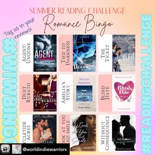 About the challengeThe challenge was set by World Indie Warriors on Instagram. They created three #WIWBingo boards; YA, Romance, and Fantasy.
