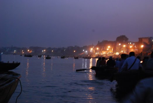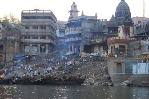 This picture from Varanasi shows the temple grounds where Hindus burn their dead. Like other tourists, we watched some of the ceremonies from a boat in the Ganges. Most boats are small, with one man rowing and three passengers. But I saw some boatmen rowing up to fifteen people. They must be strong.