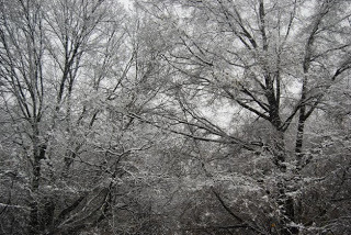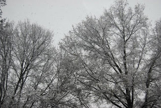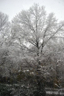 We're having our first snowfall in the Baltimore-DC area. Large wet flakes slanting down and making the world beautiful. Here are some pictures of the willow oaks in back of my house. Let's hope the driving's okay tomorrow when we have to go out.