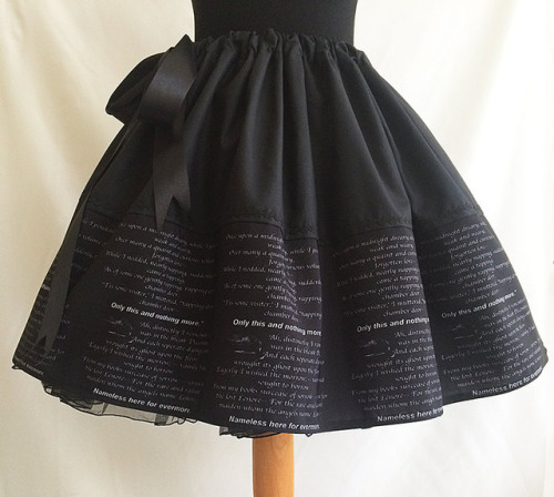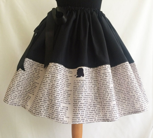UK-based fashion boutique Rooby Lane encourages everyone to wear their personality on their clothes. The designer prides themselves in using the coolest and quirkiest fabrics. Inspired by literature, pop culture and fandom, our beloved favorites are featured, including, Edgar Allan’s Poe, Alice’s Adventures in Wonderland and even elvish script on a scarf. Find the expansive collection in their Etsy shop.