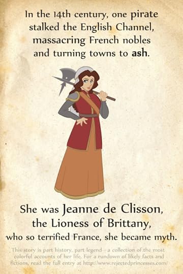Jeanne de Clisson (1300-1359): the Lioness of BrittanyMore historical details and footnotes up later today when I have more time. The short version is: we know she existed, that she led forces against France, that she became a pirate, and that she was protected by England. The extent of her feats varies greatly based on the telling – estimates of the length of her career as pirate range between five months and thirteen years! – but whatever the heck she actually did left quite an impression.