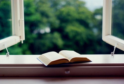 Reading by the window.