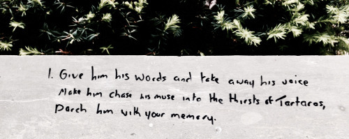 i. Give him his words and take away his voice. Make him chase his muse into the thirst of Tartaros, parch him with your memory.