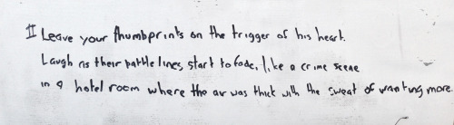 ii. Leave your thumbprints on the trigger of his heart. Laugh as their battle lines start to fade, like a crime scene committed in a hotel room where the air was thick with the sweat of wanting more.
