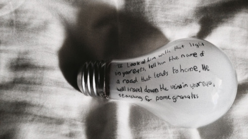 iii. Look at him with that light in your eyes, tell him the name of a road that leads to home. He will travel down the veins in your eyes, searching for pomegranates.