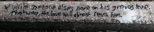 v. Write someone else’s name on his gravestone. That way, the love will almost reach him.