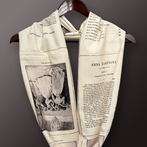 The clean and sleek design is adorned with the original text, font and illustrations of the designated novels. The typeface on each piece reminds us of a printed book, which adds to the beauty of the thoughtful creation. Our love affair with literature is completely satiated with the modern aesthetic of vintage classics. Find these lovely scarves in their Etsy shop!