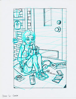 To an extent, I even feel conventions have been antithetical to my goals. It's hard to paint comic pages when you're in and out of your home studio, hard to prioritize time when you're always distracted, stressed out, tired, and just trying to get your life back together. Travel for conventions is disruptive, and living paycheck to paycheck via small commissions makes it impossible to plan for larger things. For a time, too long a time, I thought conventions were necessary- I lack the online presence and personality to really make a name for myself- but now I know I'm just another nameless vendor, a pencil for hire indistinguishable from the other pencils for hire. The time spent at conventions would have been better spent on comic pages- at least I would have something to show for it.