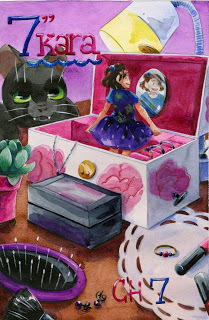 7" Kara, my watercolor, all ages comicVarious minicomics, including Lilliputian Living, Favorite Fictional Femmes, and Cicada SummerHandpainted wooden charms and laser cut wooden charmsStickers and miniprintsCommissionsMini Watercolors