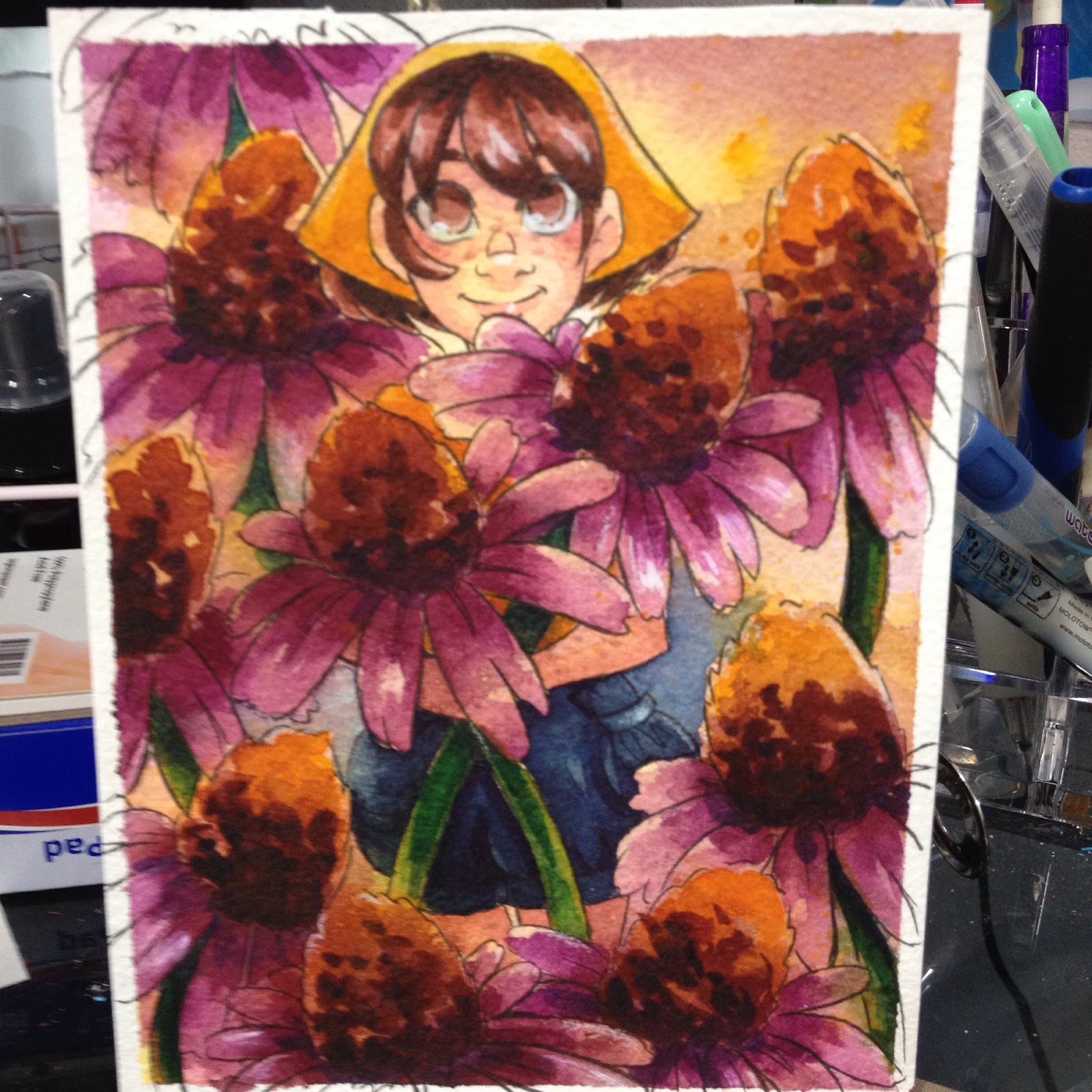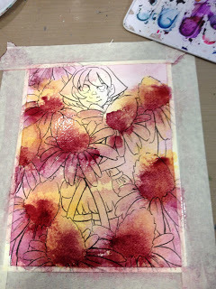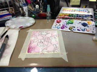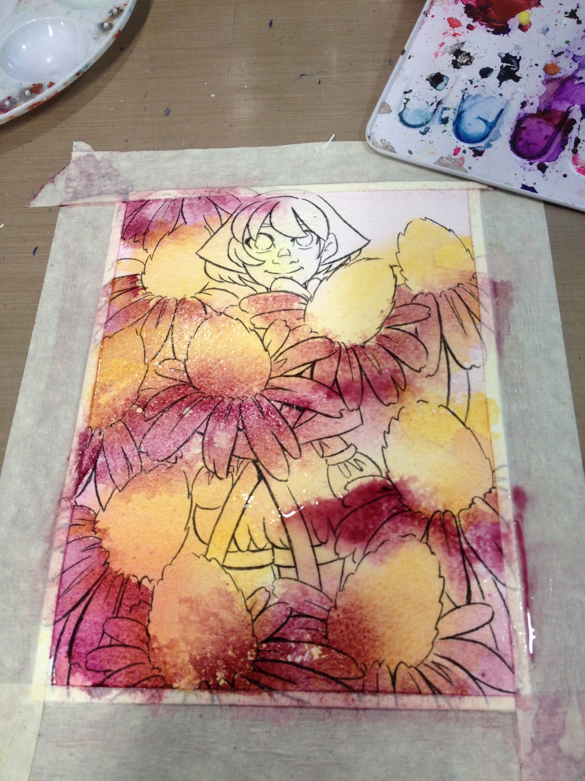 This was printed on Fabriano Studio watercolor paper (I like how it takes ink, and it performs decently for limited layer watercolor applications).