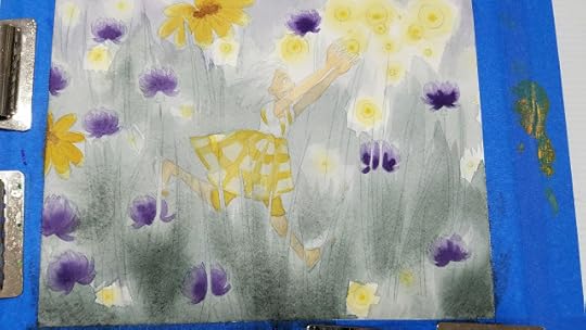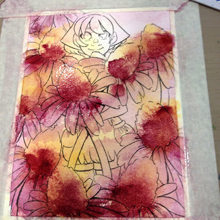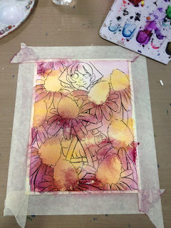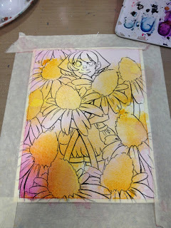 This is mainly just to give the piece an overall base color. .In this instance, I went with a light wash of warm yellow.