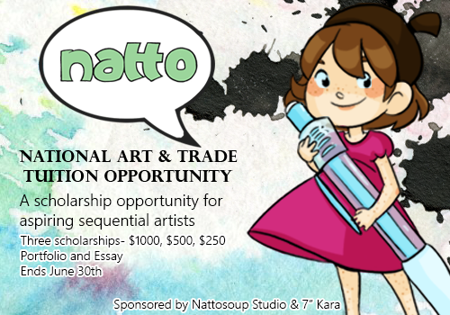 The NATTO Scholarship is a series of small scholarships aimed at helping artists pursue their art education. We're awarding three scholarships- $1000, $500, and $250 to three lucky entrants! You can find out more information about the NATTO scholarship, as well as entry information here.