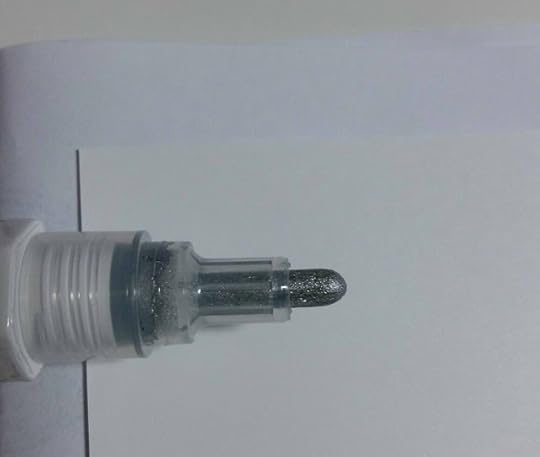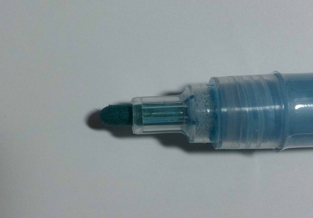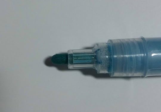 This acrylic paint marker was one of the ones I think I grabbed the tester of, the nib was already saturated with the liquid, and had a chip in it. It was one of those shake and press to get it to work type of pens and I’m never good with those markers so I will definitely never use this much and probably never buy anything of that same vein. I didn’t like the flow of it and I found it really spotty. It kinda also just went everywhere when I tried to do the nib pressing thing.