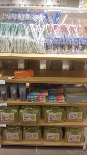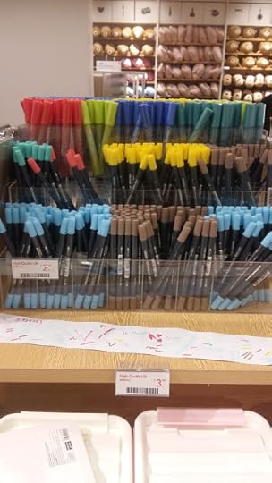 Here is the pen area, it was just one side of the shelves and one tiny display. They were buy three for three dollars, pretty much a dollar each which was a great deal. I grabbed a bunch here.