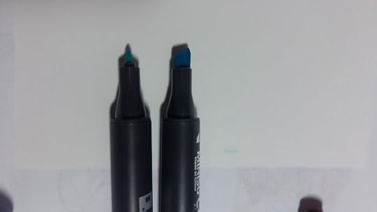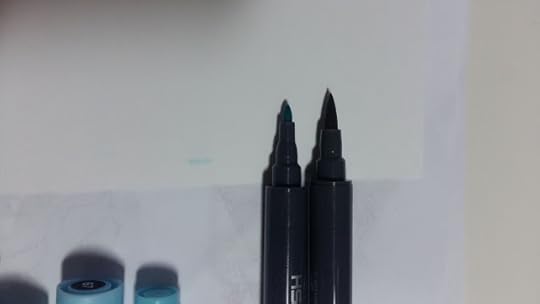 The blue marker of the two watercolour pens was another of the already opened and used ones. The metallic marker was fresh though, and I love how bright it is and how metal it looks. Flows nicely, both of them actually, but I am not sure what I would use them for other than maybe an accent on some line art. Nib press with control, because my heavy hand just makes it puddle everywhere. But the puddle was smaller than the previous pen.