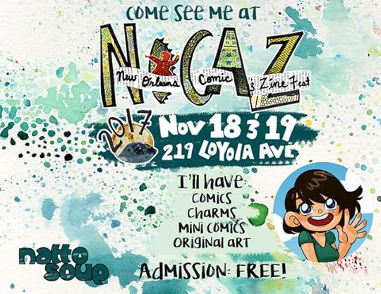 It's that time of year again! I'm tabling at NOCAZfest in New Orleans, Louisiana November 18th and 19th! NOCAZfest is a two day indie comic show held at the New Orleans Public Library on 219 Loyola Avenue. There's tons of great artists, comic creators, zine makers, and more, and admission is free! Family friendly tables will be marked by balloon, so if you're shopping with little ones, head for those tables.