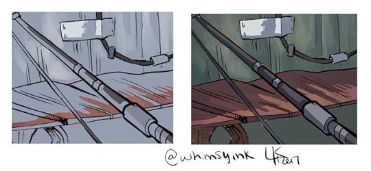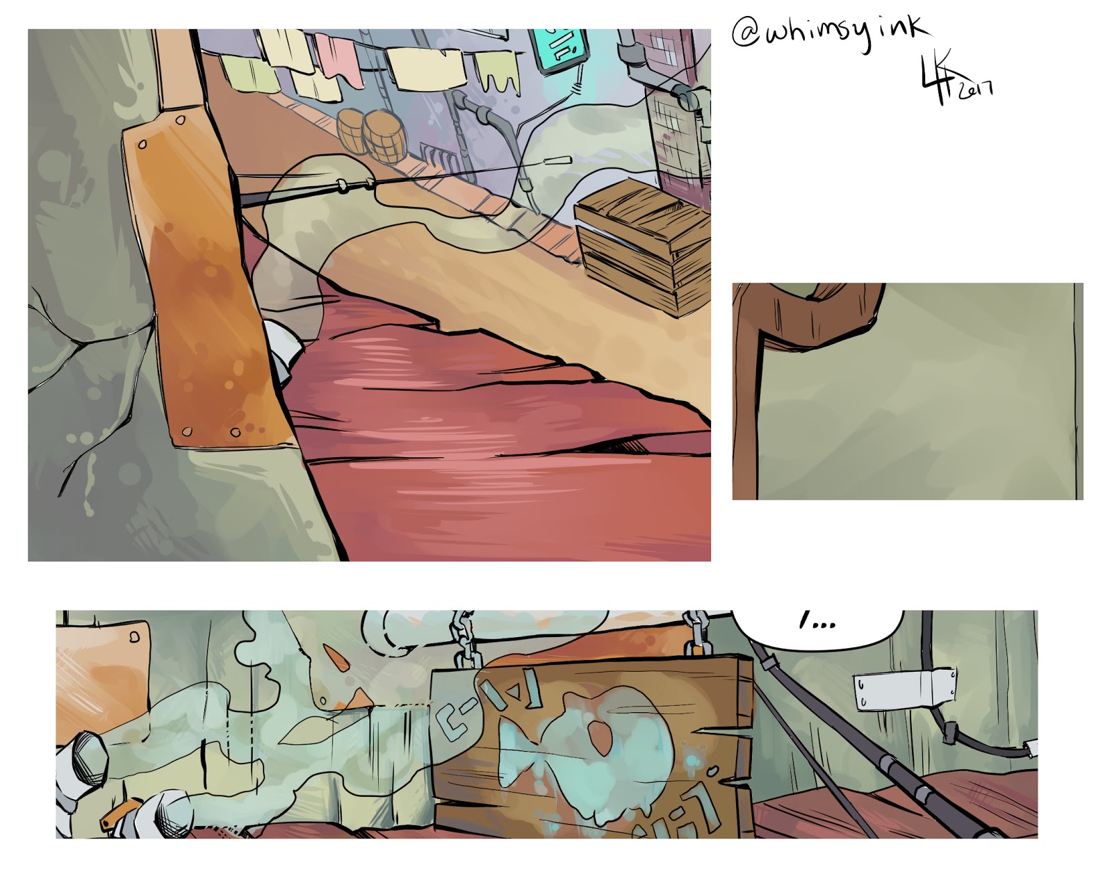I kept using the solid Multiply layers on top, but I tried switching the colors to fit the mood of the scenes, and I liked using different shades of the colors to create more depth in the drawings.
