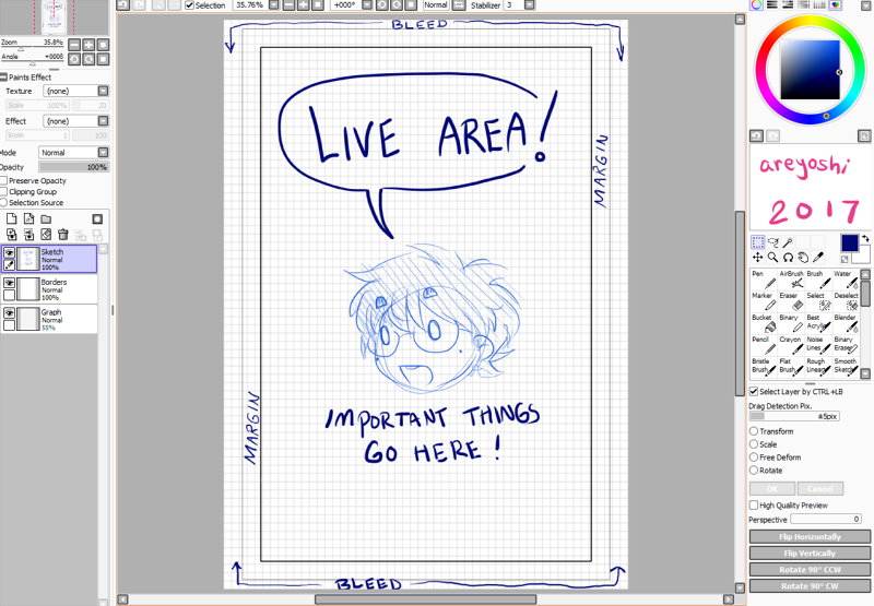 A live area is where you want any and all necessary information to go. Important expressions or speech bubbles should go here, so that they are absolutely safe from being cut off by accident.