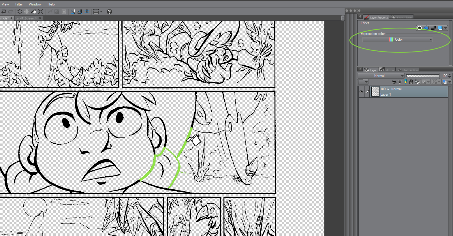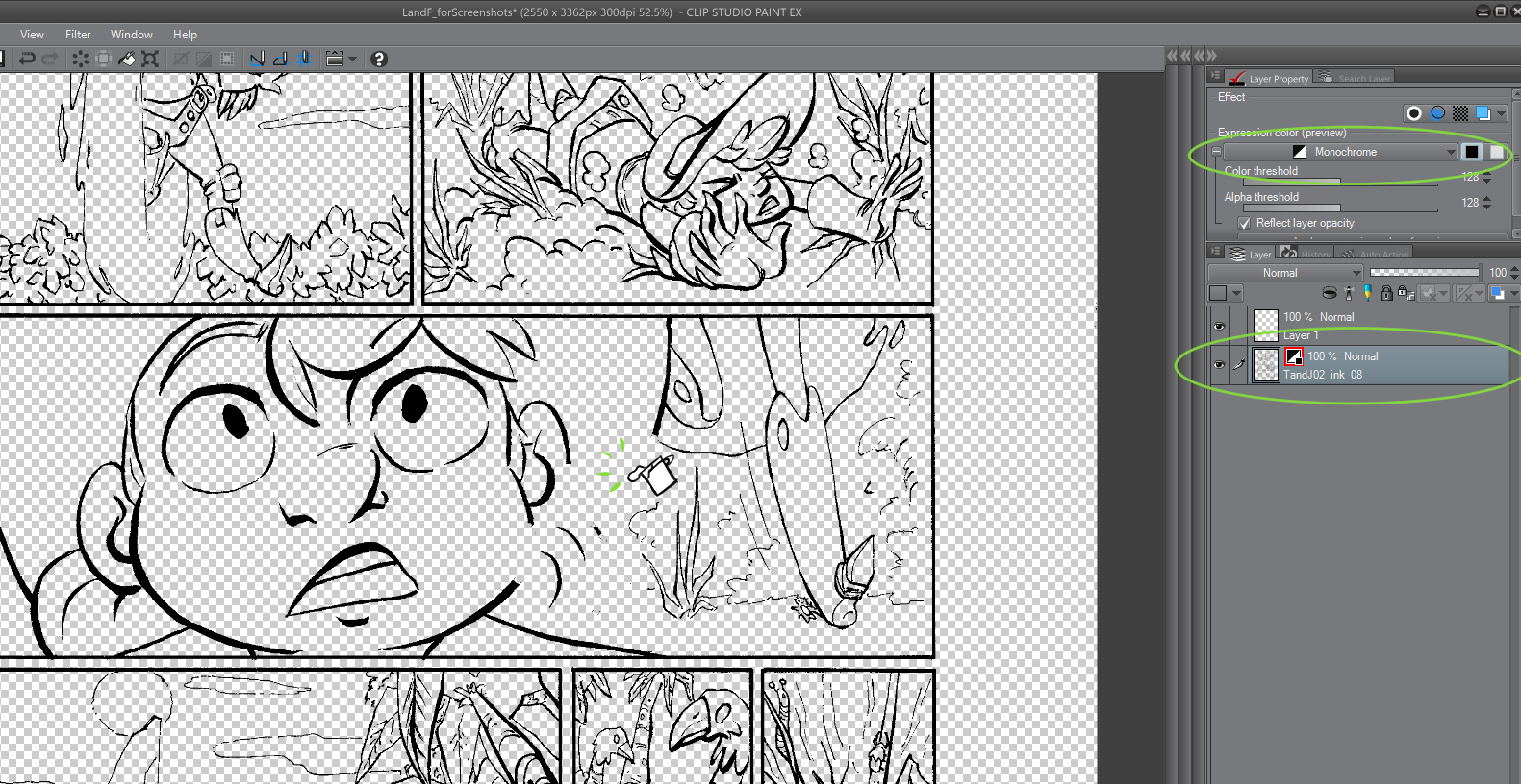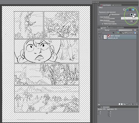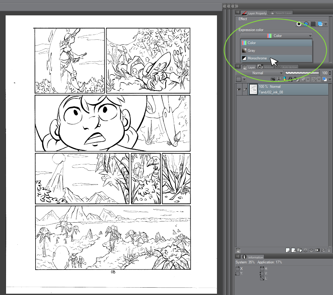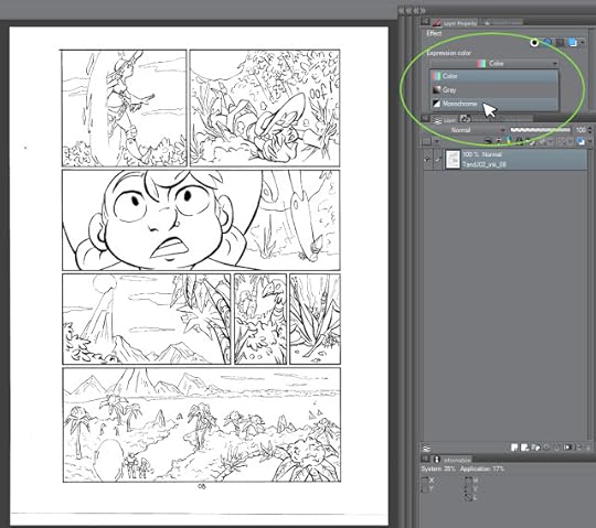 Then, in the Layer Properties window, I toggle the Expression Color to Monochrome. This makes the page channels black and white, which helps with the next step.