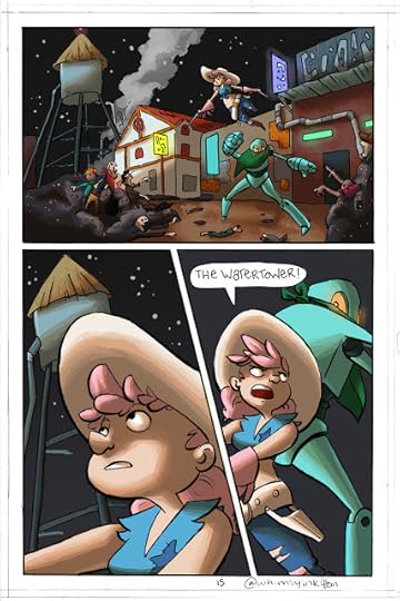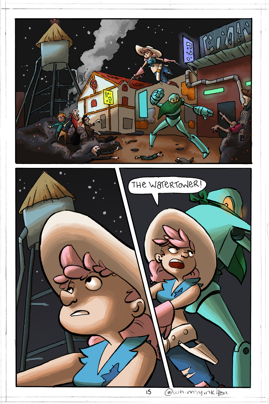 Hello! My name is Laurissa Hughes and I make a webcomic called Tess and Jack. It’s about a cowgirl named Tess and her robot partner Jack who live in a futuristic Old West. They take odd (very odd) jobs to keep themselves afloat. It’s a serial comic, so each issue can be read independently of the others and each covers a different job.