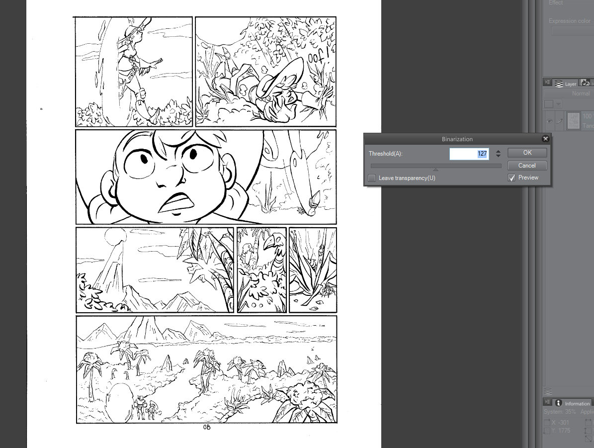 In Clip Studio, I go to Edit → Tonal Correction → Binarization