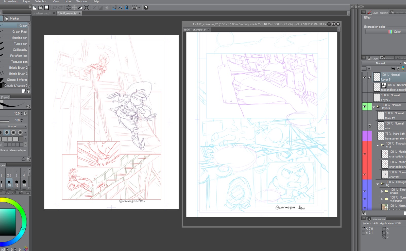 Good practice is to find out what size comic you want to print. Standard comic book size is 6.75” X 10.25”. Manga is 5” X 7.5”, and Magazine size is 8” X 10.5”. I recommend picking whatever size book you want before you start drawing your pages… Otherwise there may have to be some awkward cropping down the road, and you could end up regretting your page sizing.