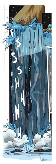 The above image is an example of where I did experiment a little bit with coloring and shading at the end of “Work for Hire”. I did some different combinations of blend modes and shading on the waterfall which was fun, and gave me some ideas for the coloring in the next issue.