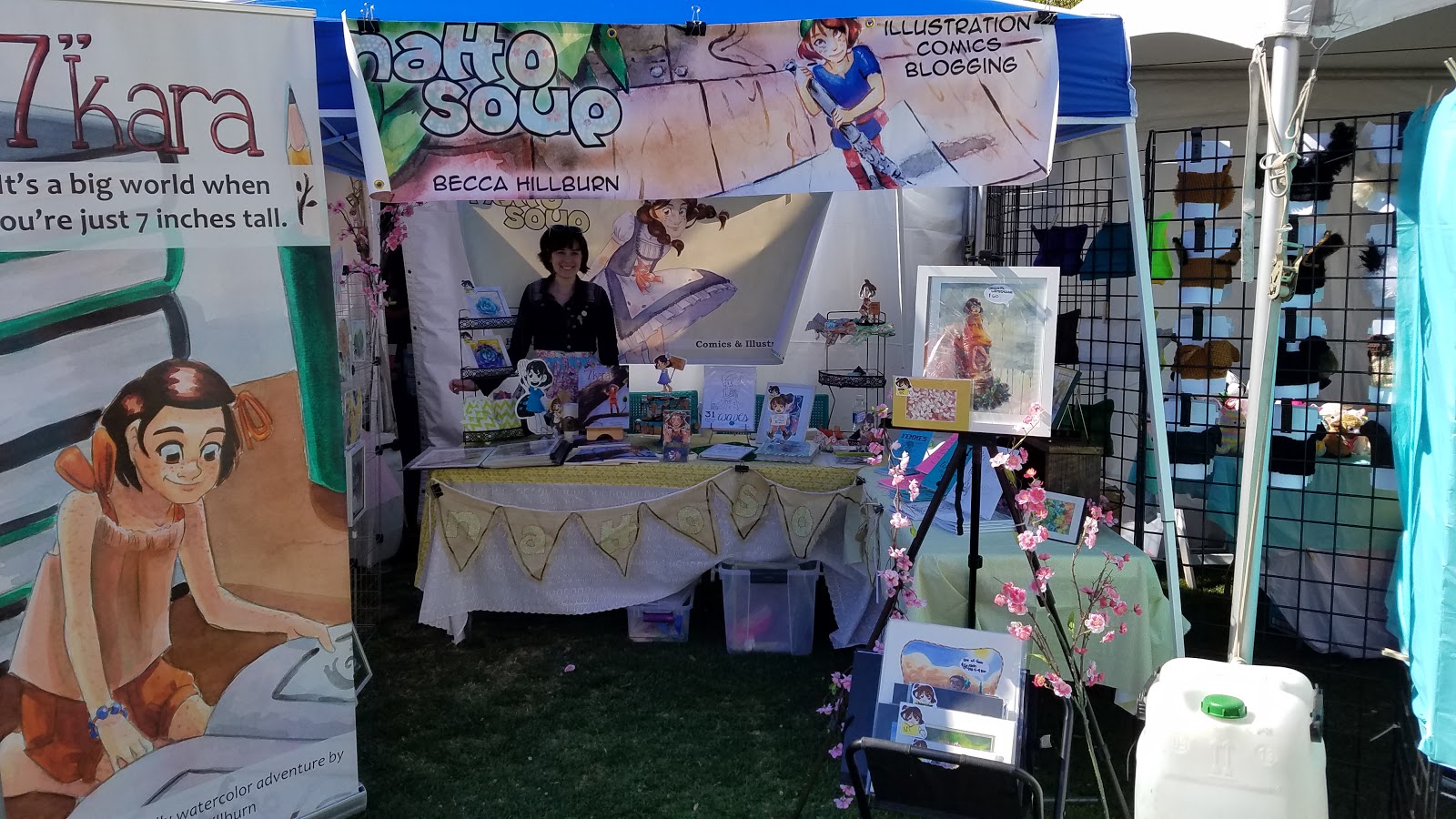 The weather was amazing! Very mild all day longThe crowds were dense, and happy to be there. I've attended CBF for four years now, and this was the best crowd yetA lot of my MTAC kids were at the Cherry Blossom Festival, which allowed for con pre-ordersFree admission meant people were willing to spend a bit of moneyDifferences Between Indoor Comic Shows and Outdoor General Shows:Weather can make or break the event for outdoor shows!Admission cost comes out of your pocket too- free admission shows that are established mean people are often willing to spend more on vendorsScale your setup to fit your tentFor one day events, bring your A-Game from the get go! There's very little downtime, but your sales window is much smallerThere's a good chance you'll be setting up your own tent, tables, and chairs, so keep that in mind when planning your timeTent events tend to have larger spaces, so you can really spread out and maximize your display