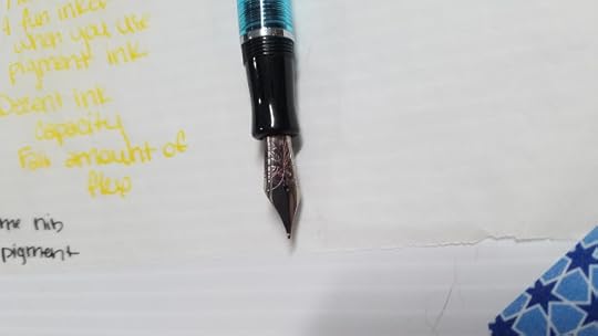 Pigment inks are harder on your fountain pens than dye based inks, as the pigment can sediment out and are harder to clean. Pigment inks are more prone to hard starts (inkflow issues at start of writing) and to skipping, and take longer to dry than dye based inks.