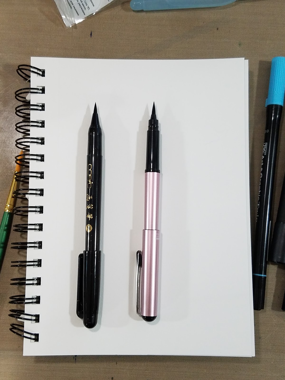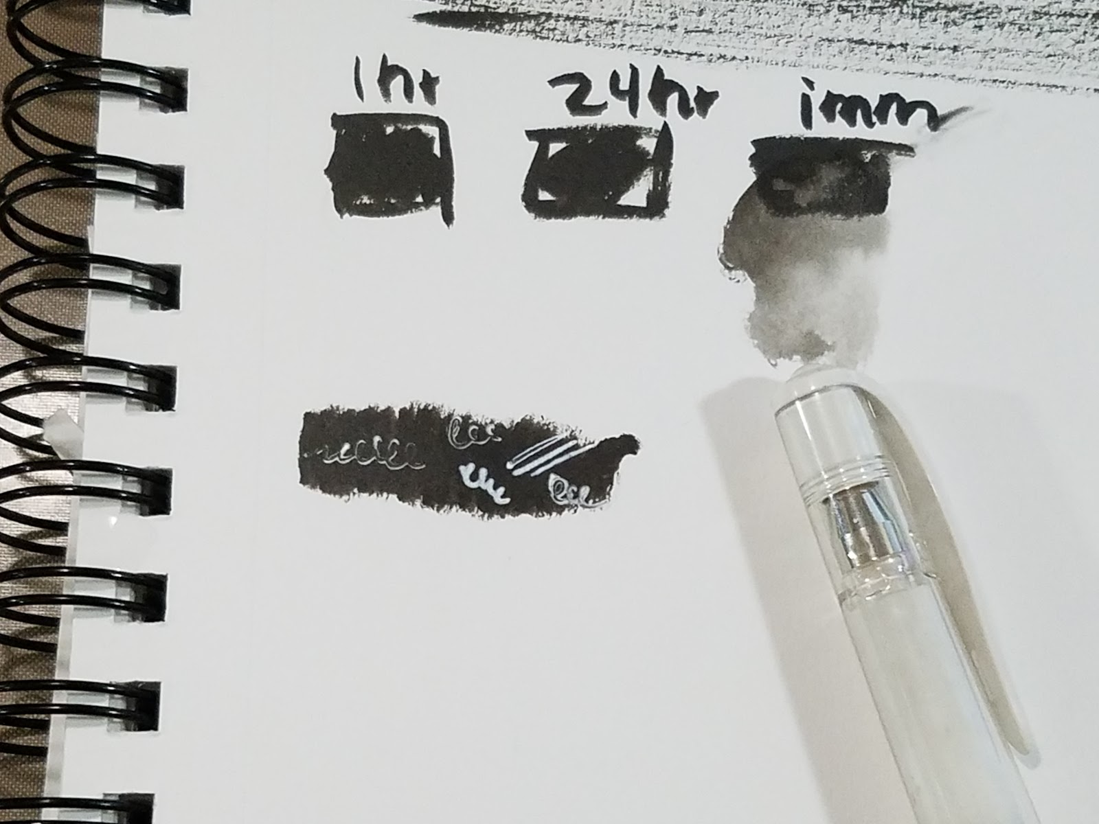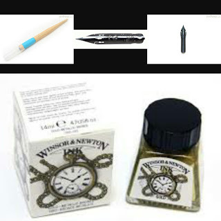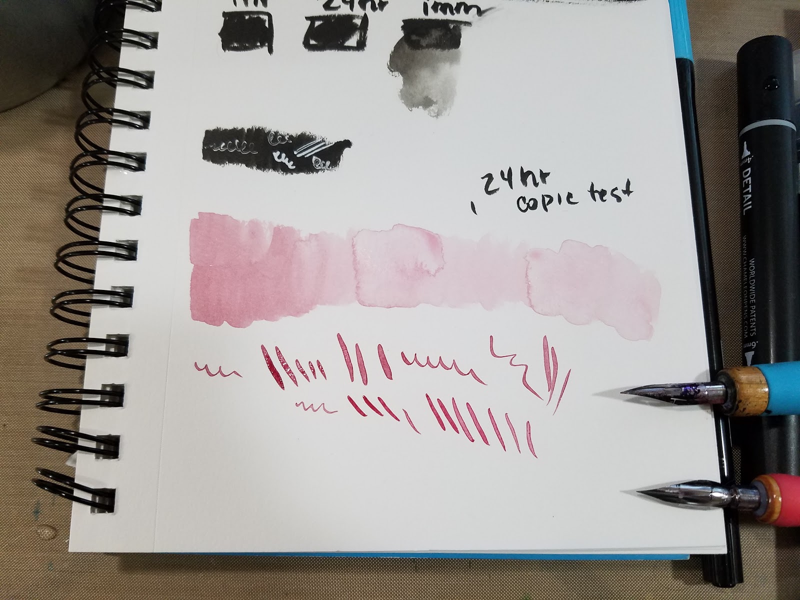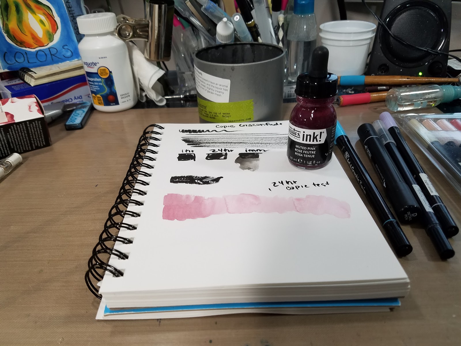 These are Winsor and Newton waterbased inks, inked in with a brush. This paper seems to handle brush inking and lettering moderately well, and does not have so much tooth that a brush would tend to drybrush.