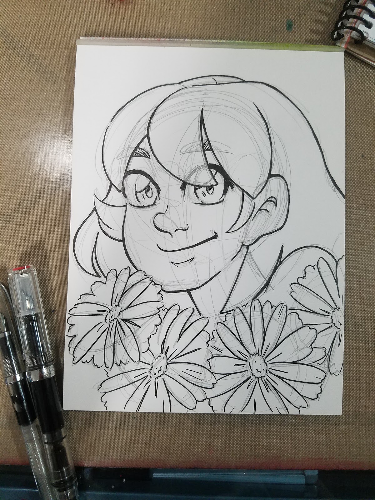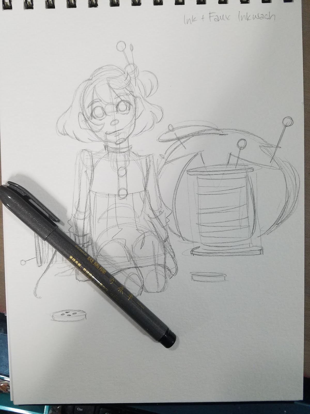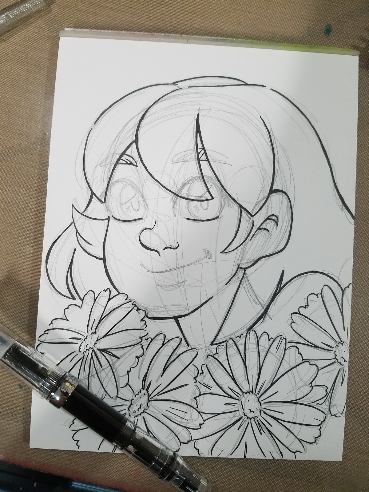 Outlines and major details were inked with a TWSBI Eco broad nib.