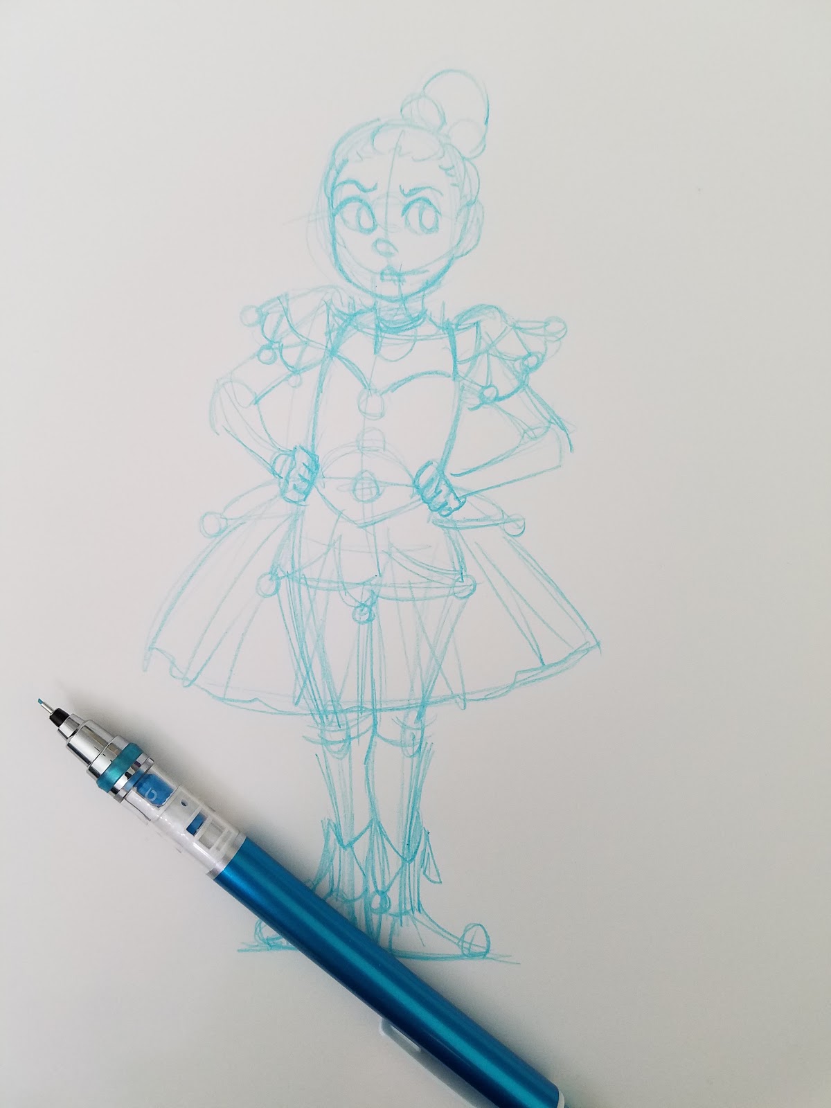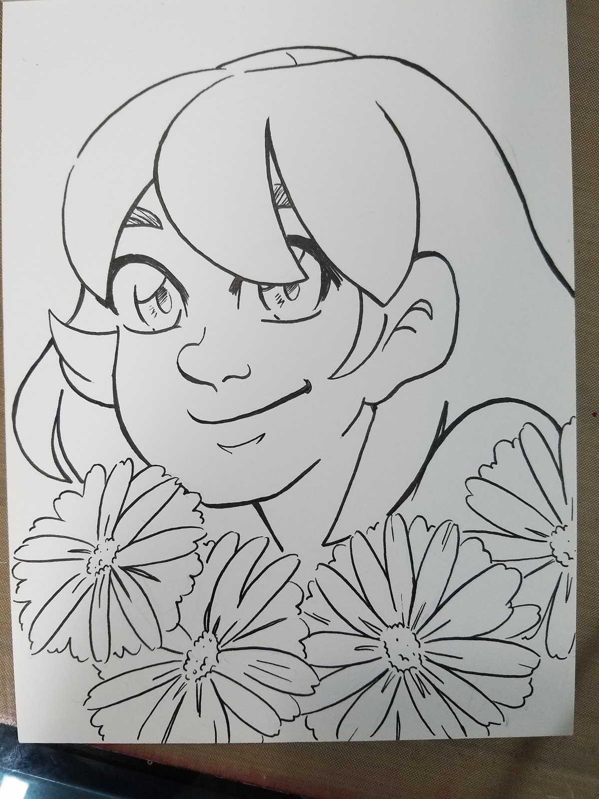 To begin, you're going to need the lineart you wish to ink, as well as your inking tools and an eraser.