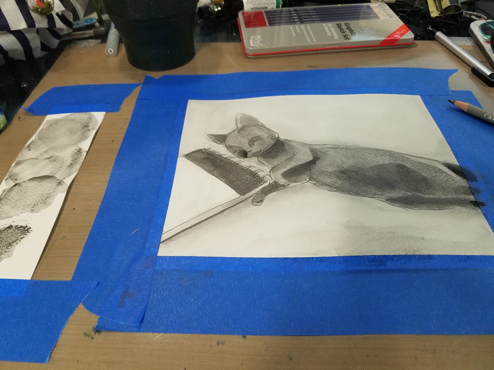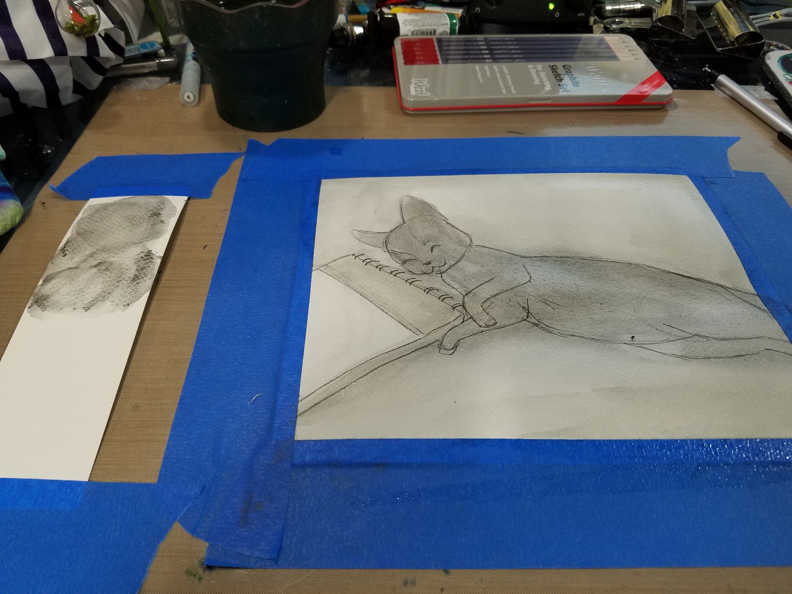 This works decently well for smaller pieces or pieces that I intend to use as a demo. If you watch my YouTube channel, you'll notice that I utilize this technique. I don't always use wide blue tape to secure my illustrations to a hard surface, nor do I always attach them to Gatorboard.