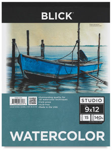 Canson XL watercolor paper (http://www.dickblick.com/p/12916) is another contender for affordable watercolor paper. Tape bound, 140lb, and also available in 11"x15", it is a suitable substitute for Dick Blick's Studio Watercolor paper.