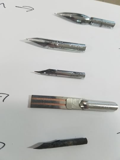 Your flexible nibs can be Western (crowquills, mapping, certain calligraphy nibs) or from Japan (G, Saji, tanks), but what really matters most is your preference towards how your work looks with those nibs.