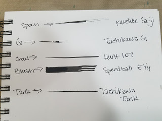 Difference between G-pen, Maru, Saji / Tama Nib Demo - Comic / Manga Fountain Pen Nib Tutorial