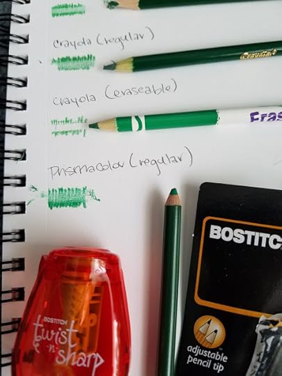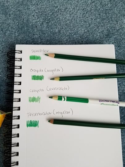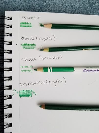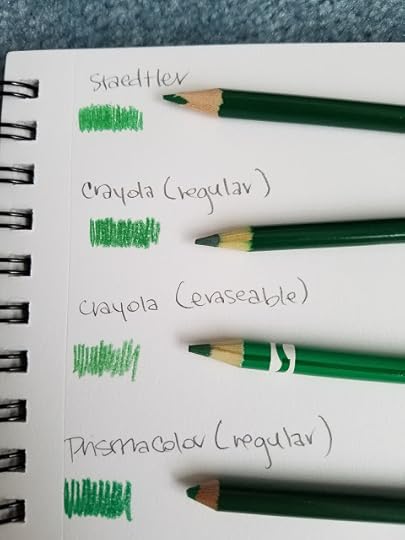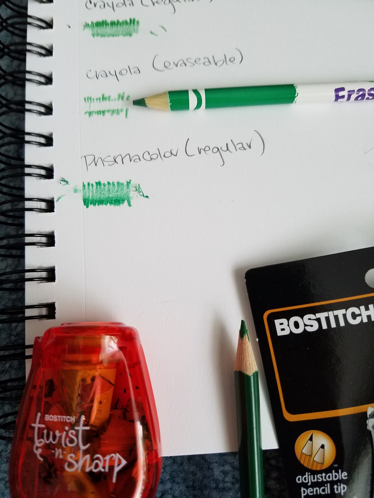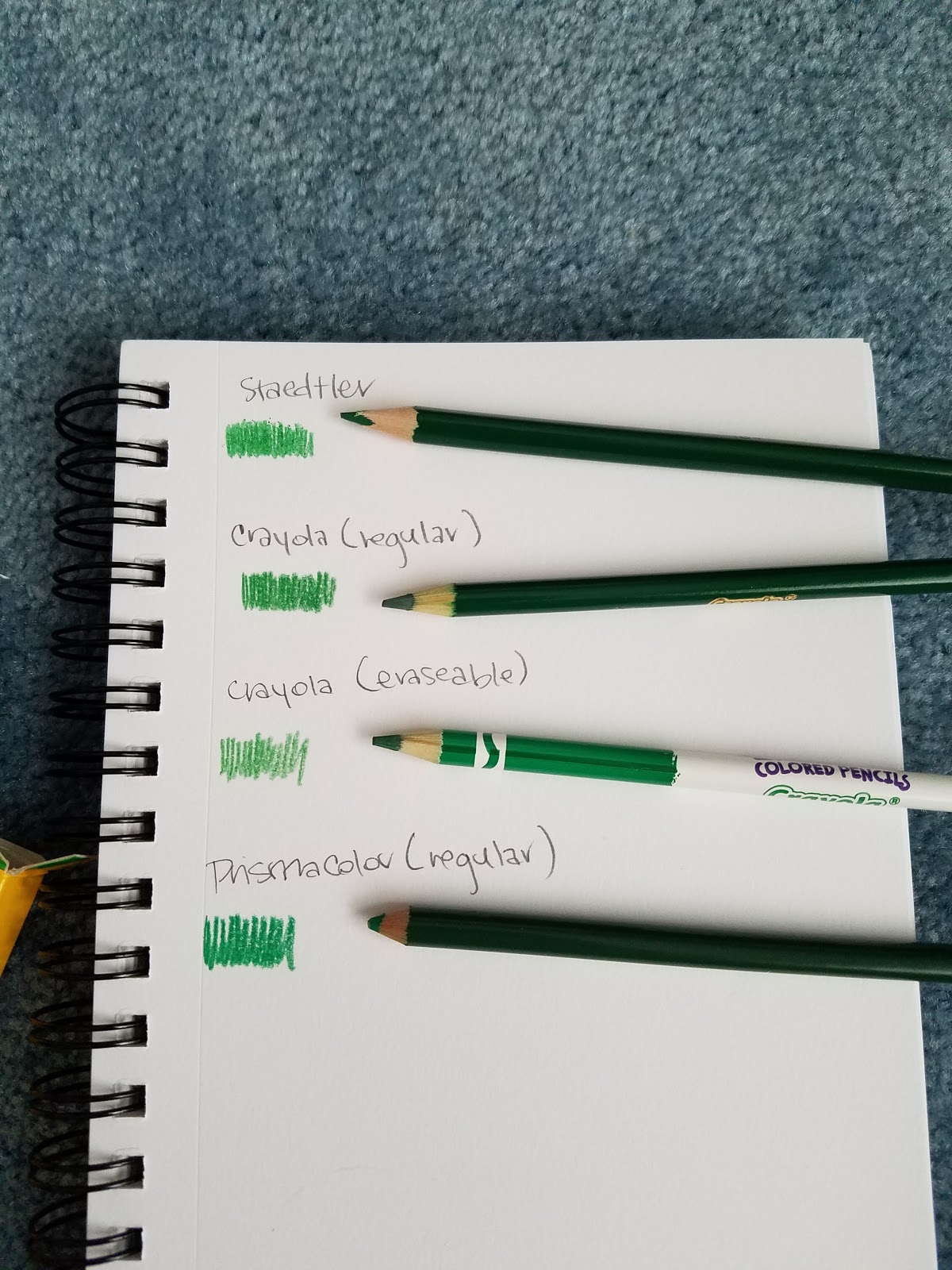 Side By Side Comparison: Crayola Original, Crayola Erasable, Prismacolor pencils, Staedtler Color Pencils