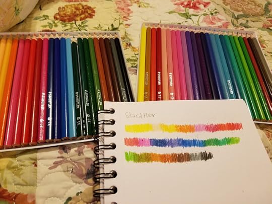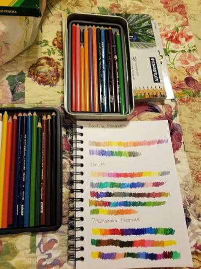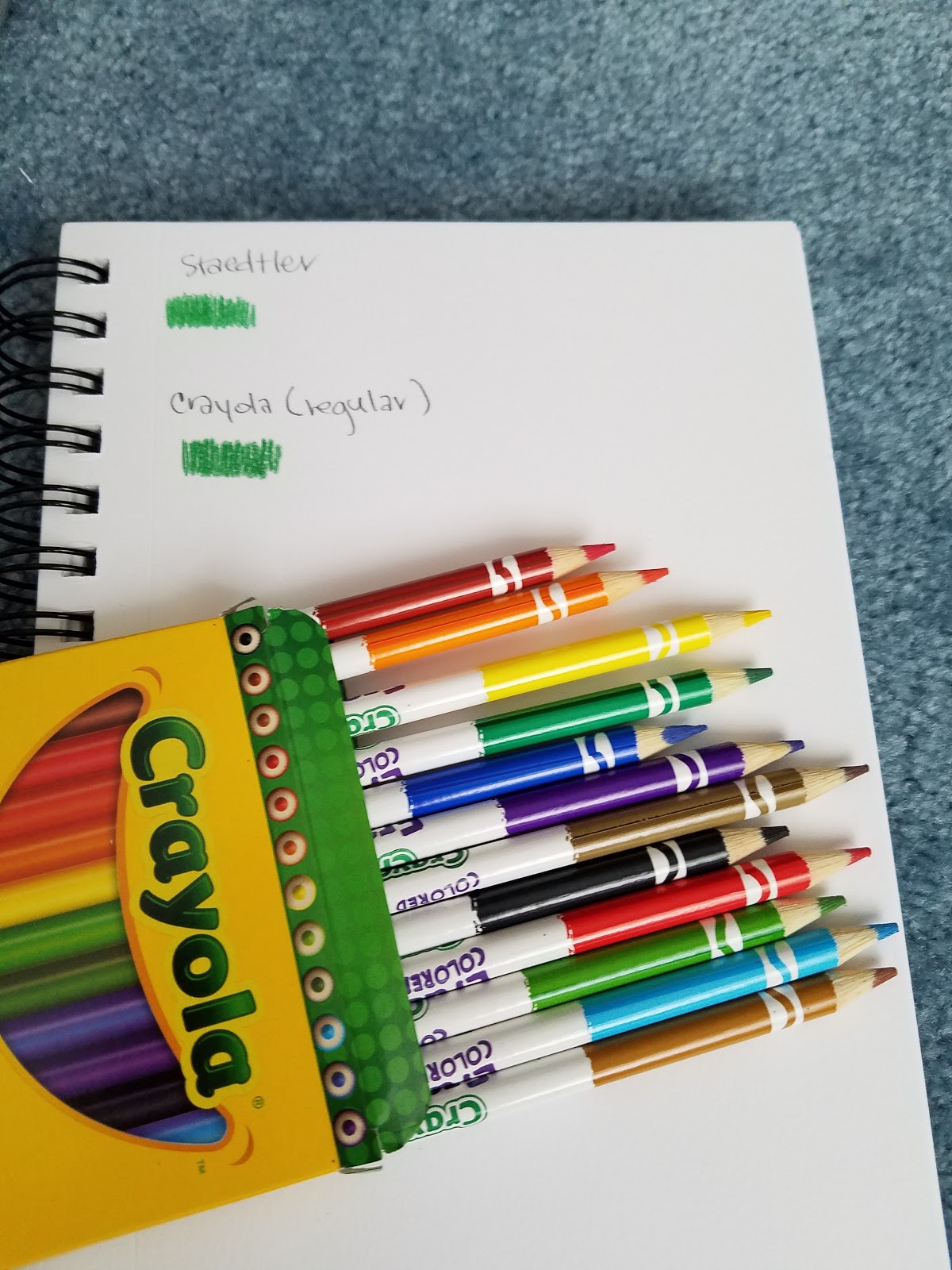 Unable to resist temptation, I also picked up a set of Staedtler color pencils to add to my little collection. The Prismacolor 24 pack was purchased from the Luling Walmart in June, as was the 36 pack of Crayolas. I figured back to school shoppers might appreciate me going over all four.