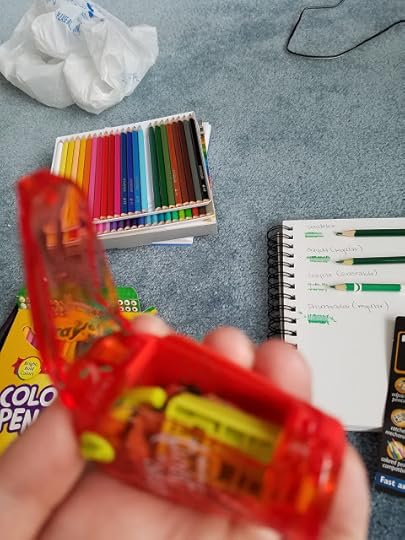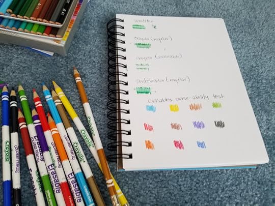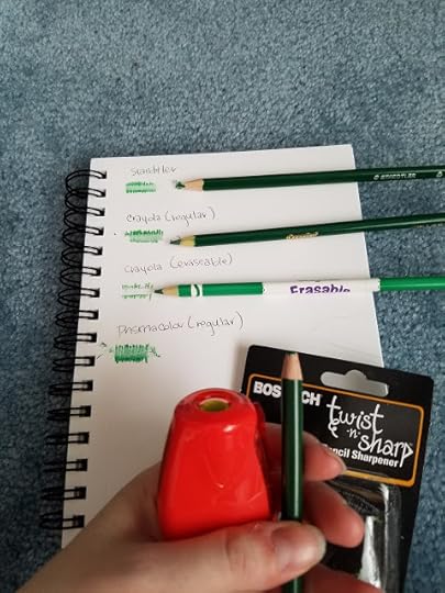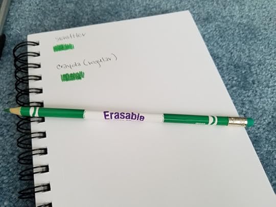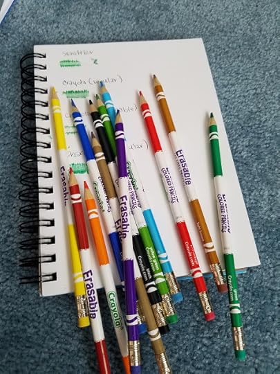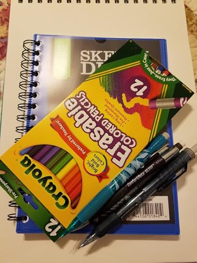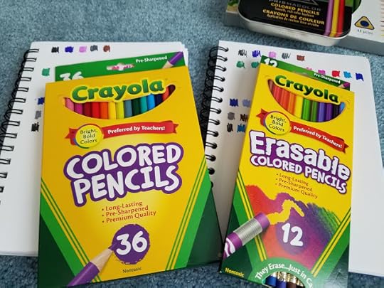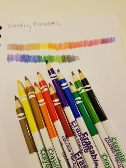 Mom discovered these Crayola Erasable color pencils while we were browsing the color pencil area of the school supply section. I thought they were intriguing- as a really little kid, I would sometimes outline or 'ink' with a black color pencil, and mistakes could not be easily erased. I could definitely see the value of erasable color pencils, and wanted to give them a shot.