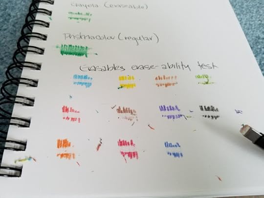 Fairly easy to draw on top of. Graphite hasn't smeared when both are erased together. By the time I got to the red sketch, I was pretty used to how the Erasables handle. Given how cleanly they erase even with graphite on top, I'd still recommend these as sketching pencils.