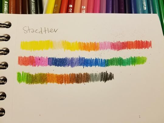 Staedtler is the most scratchy of the color pencils swatched today- very waxy