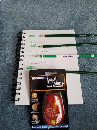 The Sky Blue Erasable is gummy and the pencil seems to stick to the paper while I draw, making it difficult to sketch smooth lines. Large chunks of lead are left on the paper, reminiscent of crayons from my youth. Pencil dulls very quickly.