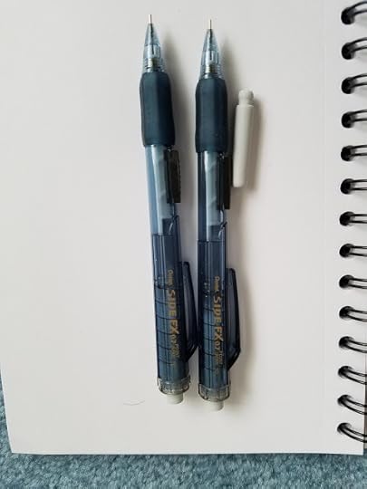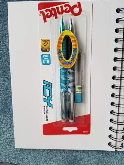 The Icy is lightweight, and the ribbed grip design is fairly novel when it comes to pencil grips. There's a fair amount of give to the grip, and the grip doesn't add undue bulk to the pencil, making it ideal for little hands. Pentel Icy mechanical pencils come in a variety of colors- I picked up the teal and black pack and right behind it were purple and pink. The Icy does not come with spare erasers, and the eraser blocks the lead feed (although back half of pencil can be pulled off for refills). Back is pushed to advance lead, so there is no side advancement getting in the way of drawing and writing. A clip allows you to attack this pencil to your notebook.