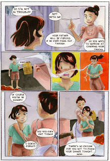 For my current work- my comics and illustrations, I use two fairly large palettes. I work with a lot of convenience colors, and I work with pan watercolors as well as dehydrated tube watercolors. There are many artists who argue that rehydrated tube colors never work as well- they're right. When I want something specific that would work best with fresh color, I go for the tube or the pan.