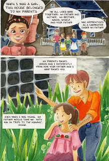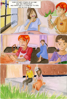 Sample page from Cloud's Tale, a children's book completed in my sophomore year at UNO. Illustrations were watercolor with text inserted using Photoshop. Notice how scrubby the background was- that's the effect of cheap watercolors on cheap watercolor paper, applied with cheap synthetic brushes. The paper didn't take water particularly well, the water absorbed so quickly that the paint appeared streaky.